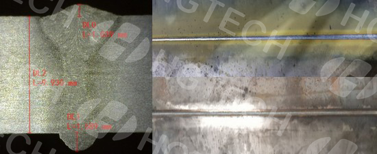 我司承接了某船廠的船板激光電弧復(fù)合焊工藝開發(fā)項(xiàng)目,針對(duì)船用5-10mm中厚板,通過(guò)大量工藝試驗(yàn)與檢測(cè)分析,對(duì)各厚度船板進(jìn)行激光復(fù)合焊接工藝研究,穩(wěn)定實(shí)現(xiàn)5-10mm船板拼焊單面焊雙面成形和T形焊縫雙面焊,工件焊前均無(wú)需開坡口,焊縫成形飽滿、美觀、均勻一致,無(wú)不良缺欠,焊接強(qiáng)度高,滿足船級(jí)社焊接質(zhì)量標(biāo)準(zhǔn),獲取了船板中厚板激光電弧復(fù)合焊工藝規(guī)范和工藝數(shù)據(jù)庫(kù)。