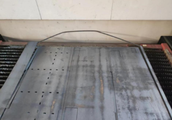 切割厚板需要更大功率的激光設(shè)備,產(chǎn)生的熱量會使得局部區(qū)域發(fā)生明顯的熱變形,切割后周圍區(qū)域的形變量會使得預(yù)先或者最后切割的廢料線交錯,導(dǎo)致切割到零件;可以說原有的廢料線方案本身并沒有考慮到實際的生成需求,罔顧形變量、熱效應(yīng)等在切割過程中帶來的影響,因此無法處理四邊邊框,存在分揀難的問題;再加上因鋼板本身存在彎曲狀態(tài)以及切割過程中零件與板材分離產(chǎn)生的應(yīng)力釋放,極易出現(xiàn)小塊廢料翹起“打”到切割頭的情況,輕則噴嘴、保護鏡報廢,重則切割頭受損,部件損傷會導(dǎo)致切割加工頻繁停止,降低生產(chǎn)效率。