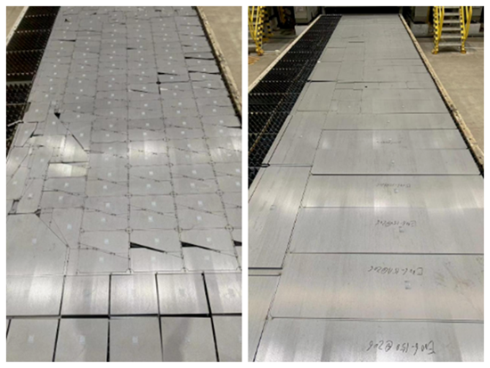 “廢料切斷”一直是激光整板切割的一個“老大難”問題。許多激光切割從業(yè)者經(jīng)常遇見零件粘連在板材上,沒有完全分斷;或是剩余廢料整體與零件錯位,而廢料本身龐大,無法移動,導(dǎo)致零件卡在其中(如圖1-圖2所示)。這些情況會給現(xiàn)場人員的分揀工作帶來巨大麻煩,加工效率也受到限制,因此引入合理的廢料分斷手段成為激光加工行業(yè)的“燃眉之急”。