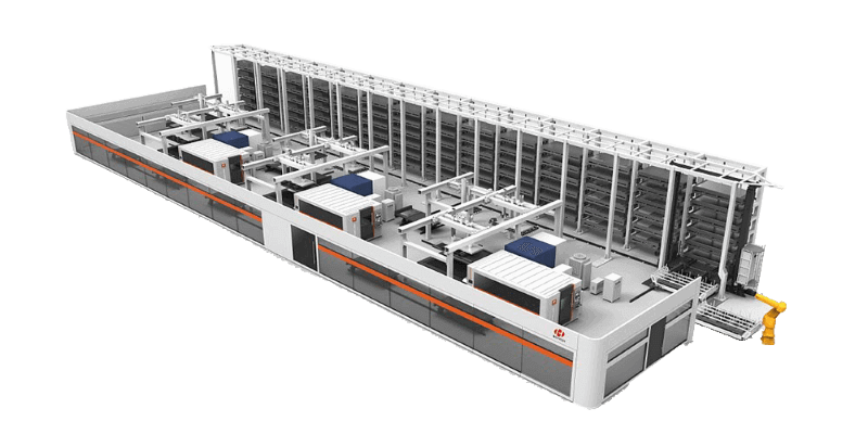 實現(xiàn)物料立體存儲,自動出入庫,配套數(shù)控沖床、激光切割機、數(shù)控折彎機等鈑金設備