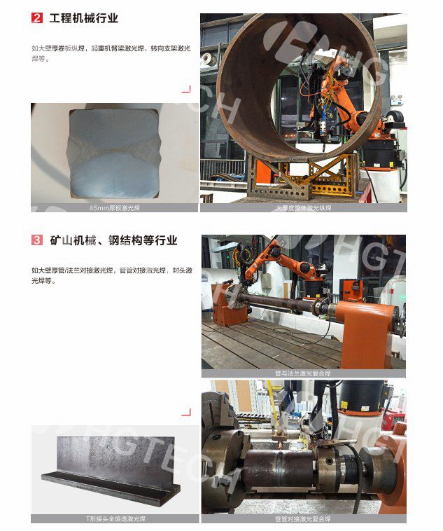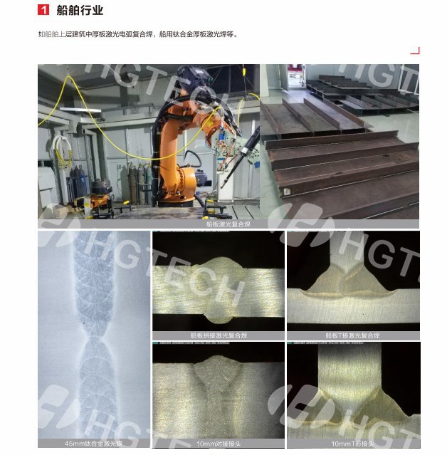 為客戶提供軌道交通、工程機械、船舶制造、鋼結(jié)構(gòu)等領(lǐng)域中厚板的高效焊接服務(wù)。常用工藝有窄間隙厚板/超厚板激光填絲焊、激光電弧復(fù)合焊等,厚度可覆蓋5-50mm。